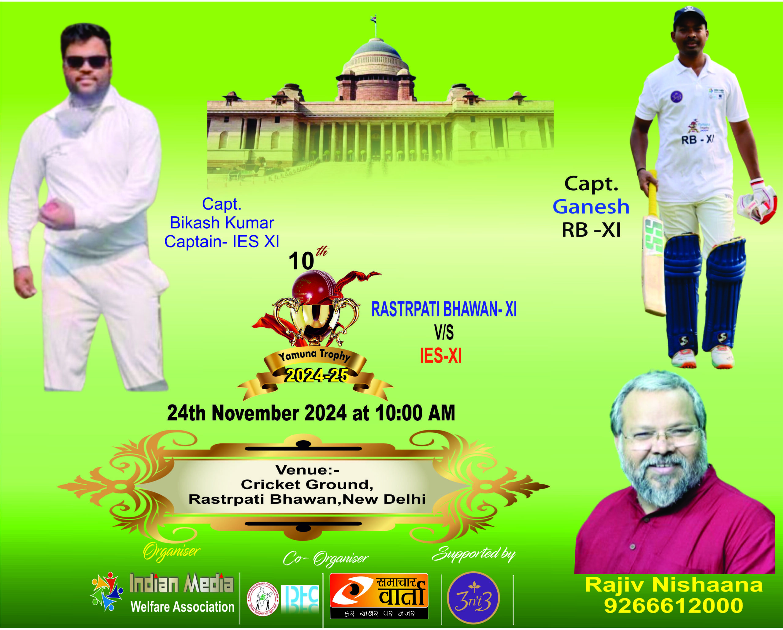 рд░рд╛рд╖реНрдЯреНрд░рдкрддрд┐ рднрд╡рди рдореЗрдВ рд╣реЛрдЧрд╛ рдпрдореБрдирд╛ рдЯреНрд░реЙрдлреА рдХрд╛ рдореИрдЪред рднрд┐рдбреЗрдВрдЧреЗ рдЖрдИрдИрдПрд╕ рдФрд░ рдЖрд░рдмреА рдПрдХрд╛рджрд╢ рдХреЗ рдЕрдзрд┐рдХрд╛рд░реА